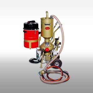Standard dustless blasting head 1019D with 4 mm nozzle made form boron carbide. Includes all the necessary hoses, mixing valve 453 D, pneumatically operated, with electric switch board and tele-command.